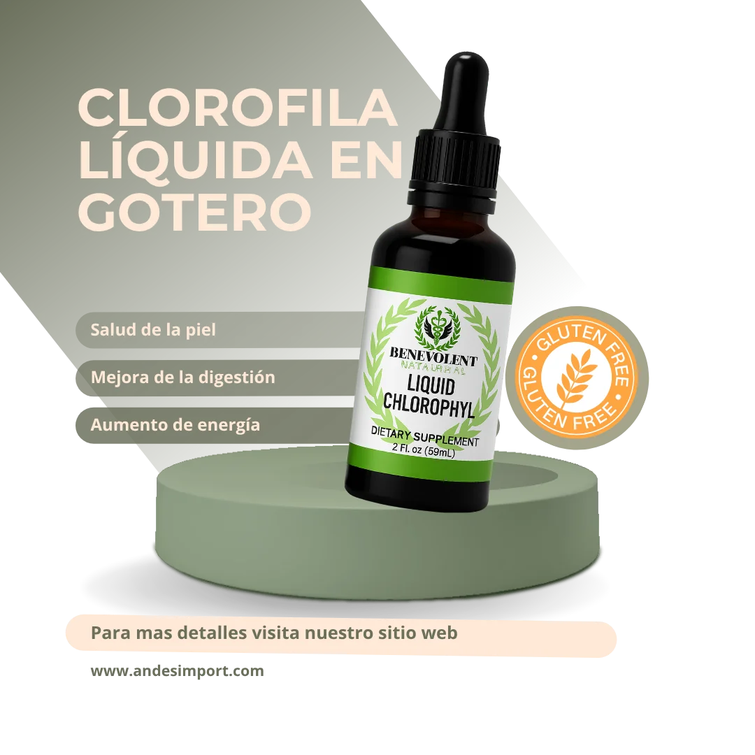 Clorofila líquida en gotero 59ml: desintoxica tu cuerpo, mejora el aliento, eleva tu energía y fortalece tu salud de forma natural. ¡Tu bienestar en cada gota!