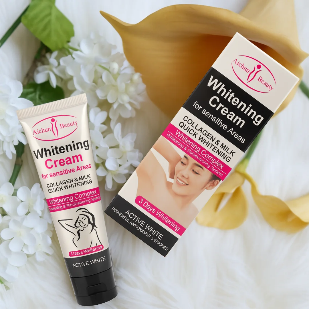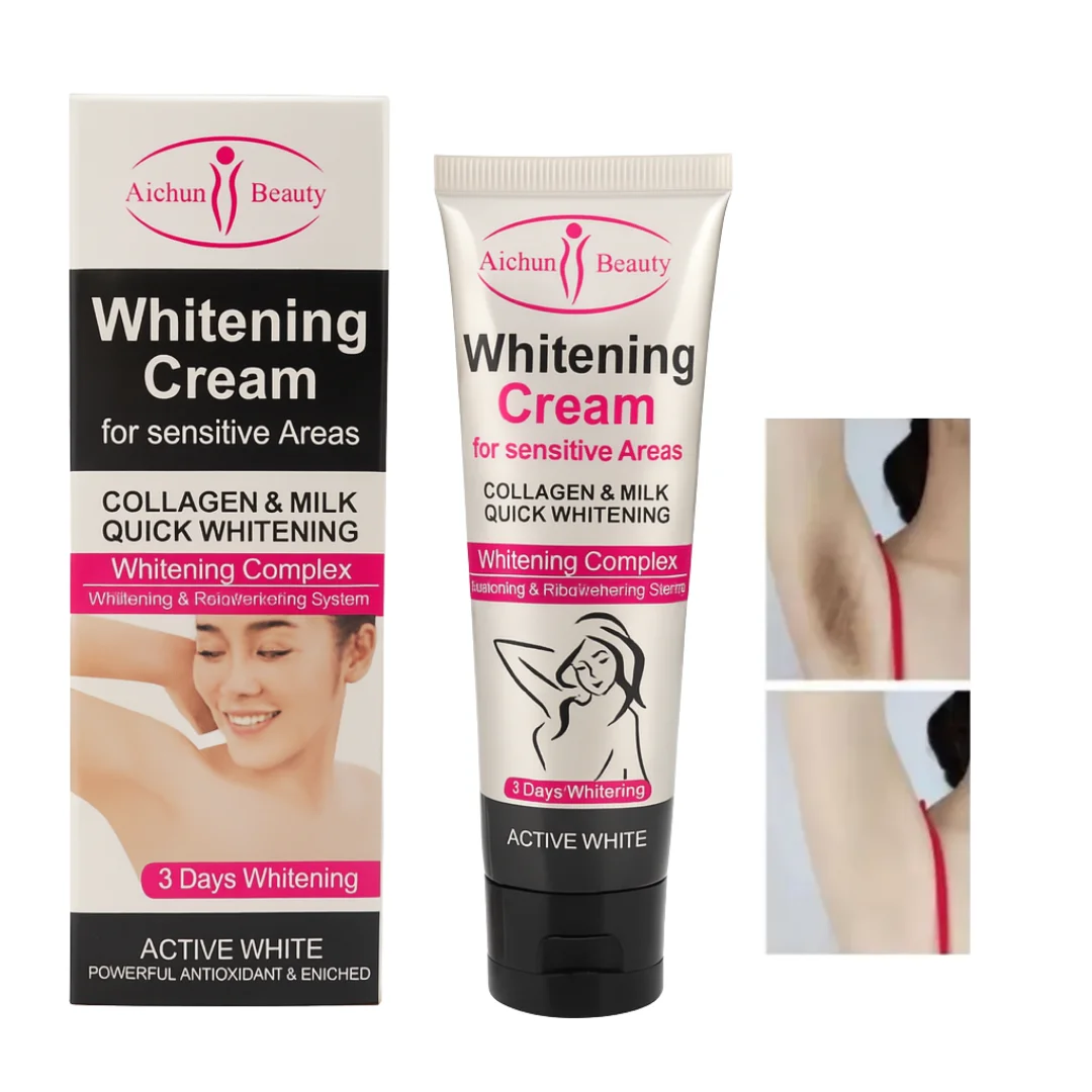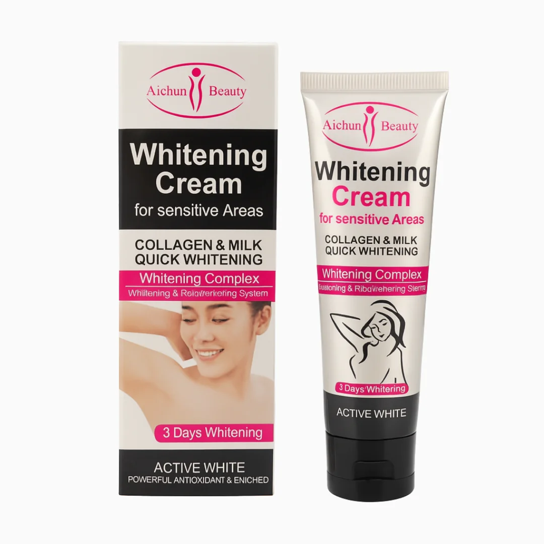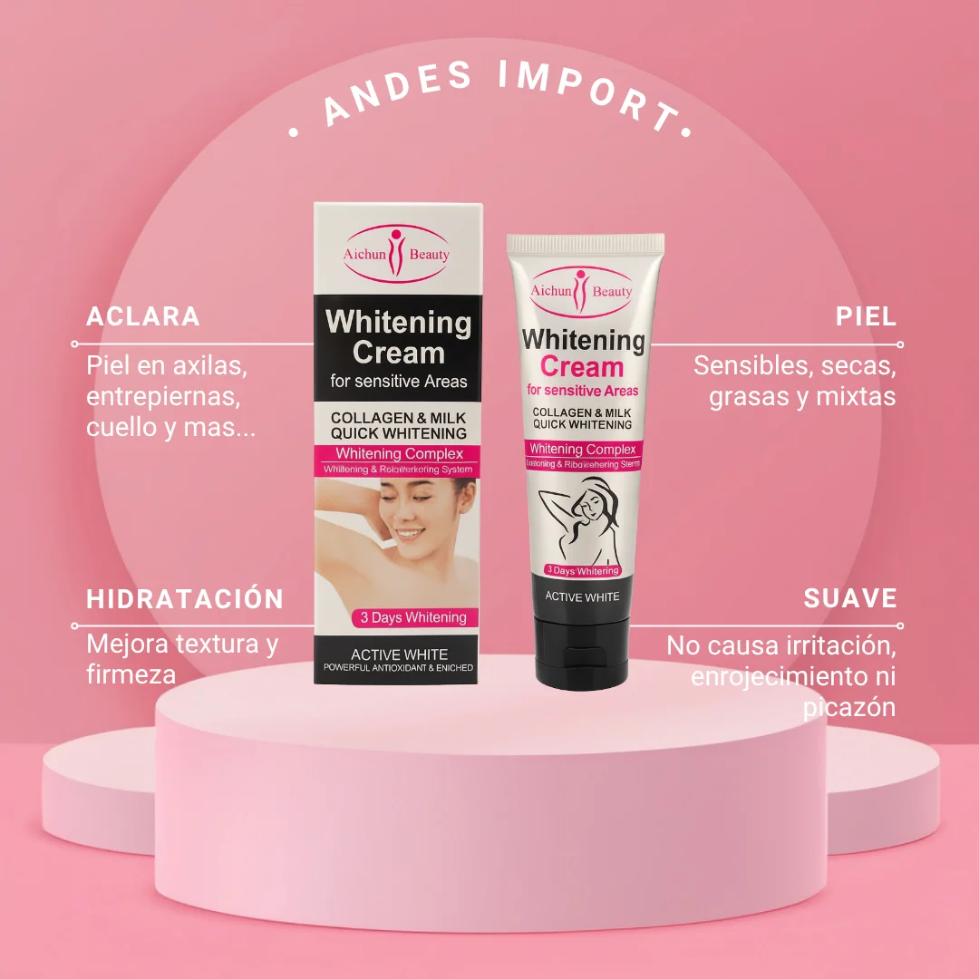 La Crema Aclaradora Aichun Beauty para Áreas Sensibles es una solución avanzada para aclarar e hidratar zonas íntimas y delicadas del cuerpo. Formulada con ingredientes botánicos naturales, colágeno, extracto de leche y péptidos blanqueadores, esta crema ofrece resultados visibles en poco tiempo, sin dañar la piel.
