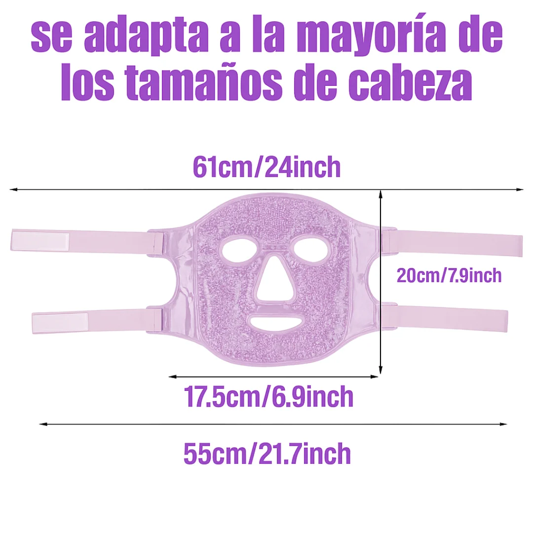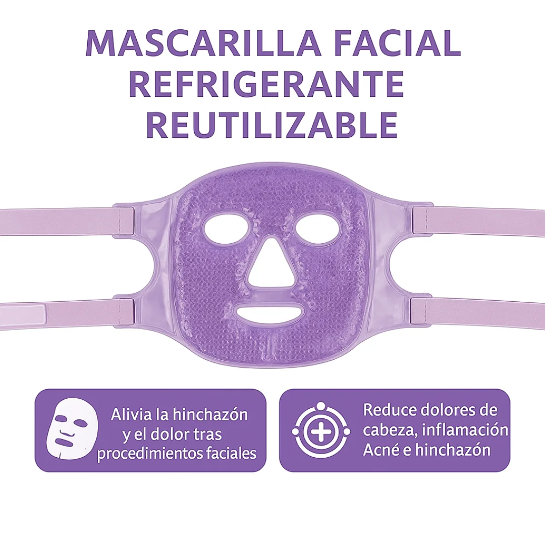 Fabricada con un gel suave y flexible, generalmente recubierto con tela o silicona, se adapta perfectamente a la forma del rostro. Su uso en frío ayuda a reducir la hinchazón, minimizar las ojeras, calmar la piel irritada o enrojecida e incluso aliviar quemaduras solares. Al aplicarla fría, los vasos sanguíneos se contraen, ayudando a desinflamar y refrescar el rostro de manera inmediata.